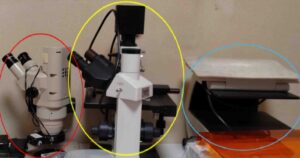 〇蛍光顕微鏡:3色の蛍光画像を拡大して観察、撮影します。写真はパソコンで見れます。