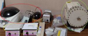 〇水平振とう器:液体の入った試験管(チューブ)を載せて左右に振り混ぜます。